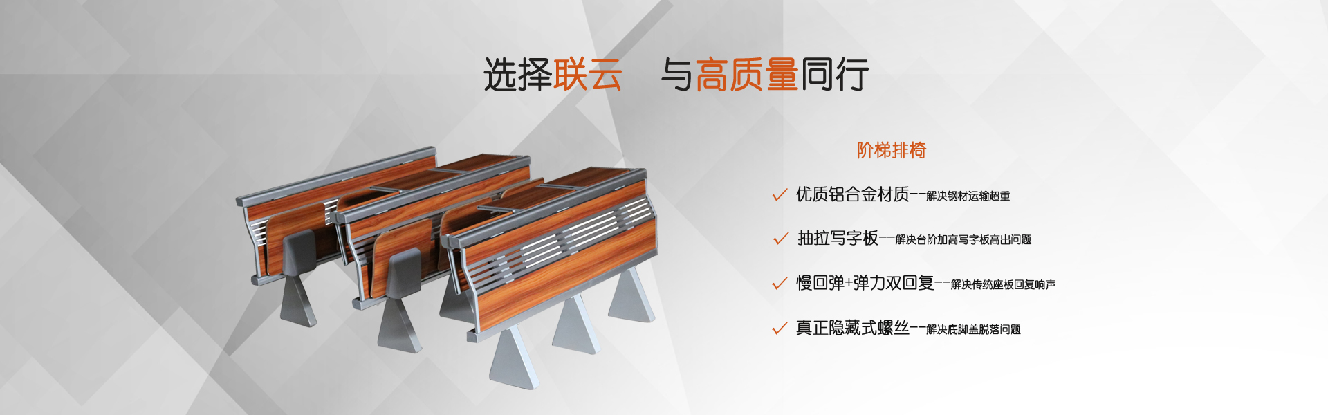 選擇階梯排椅常見的三個注意點:選擇階梯式排椅常見的三個注意點:1、看材質(zhì),優(yōu)質(zhì)多層板和阻燃防火板、膠合板單板選擇一級板材,這樣選擇的板材拼接,無裂縫,無孔洞,周邊罩優(yōu)質(zhì)聚脂清漆,邊沿整齊平滑,層紋清楚,這樣的板材是比較好的板材。